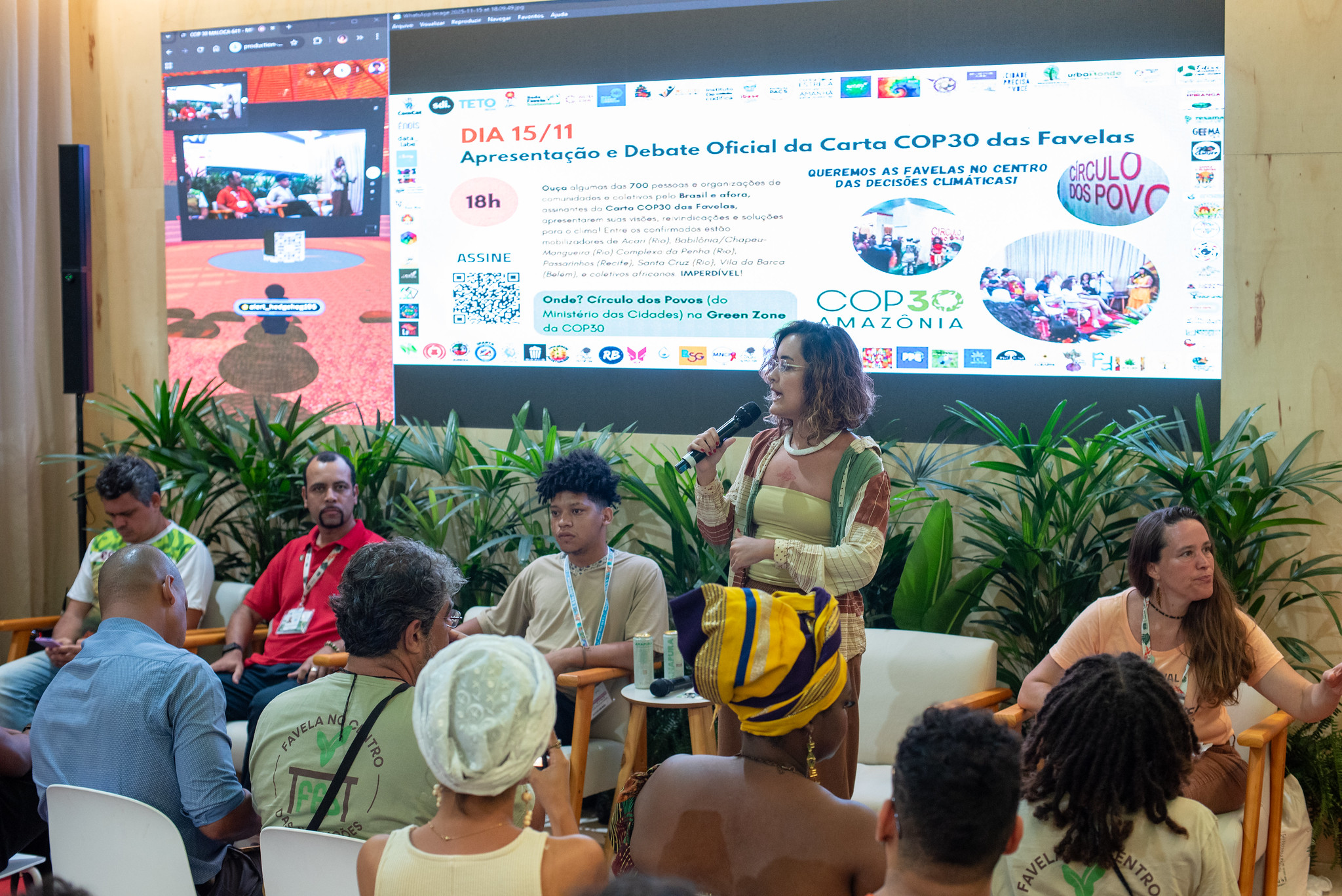 Durante meses, 100 integrantes da RFS produziram a Carta COP das Favelas, uma carta aberta que demanda que as favelas do mundo estejam no centro das decisões climáticas. No final do ano, levamos a carta, assinada por movimentos e grupos de 43 países à COP30.